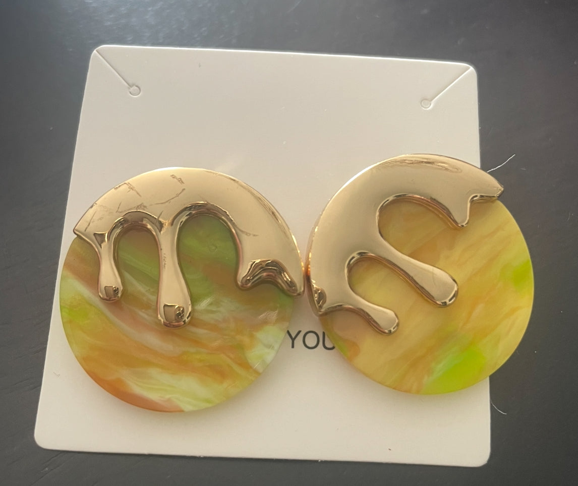 Boucle d’oreille avec un mélange de couleur vert/dore/jaune