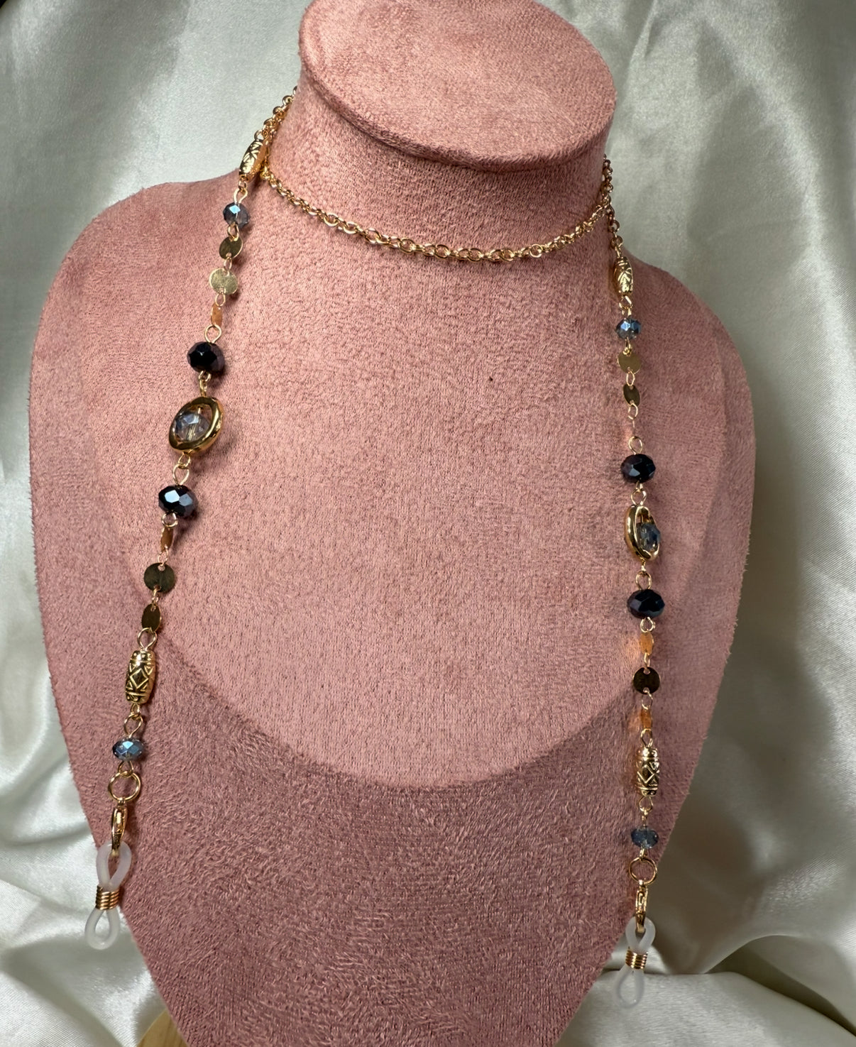 Chaîne lunettes en bleu nuit et doré
