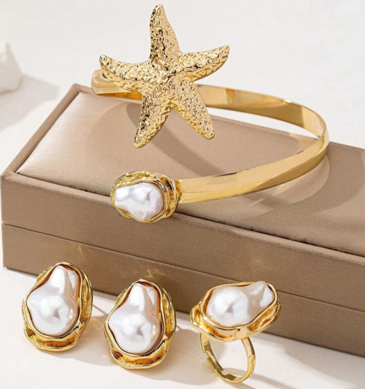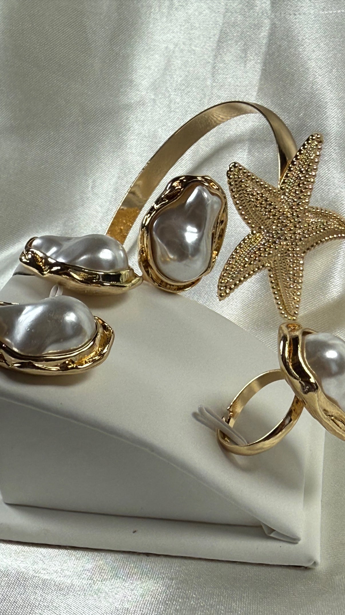 Magnifique ensemble étoilé de mer en doré et nacré .