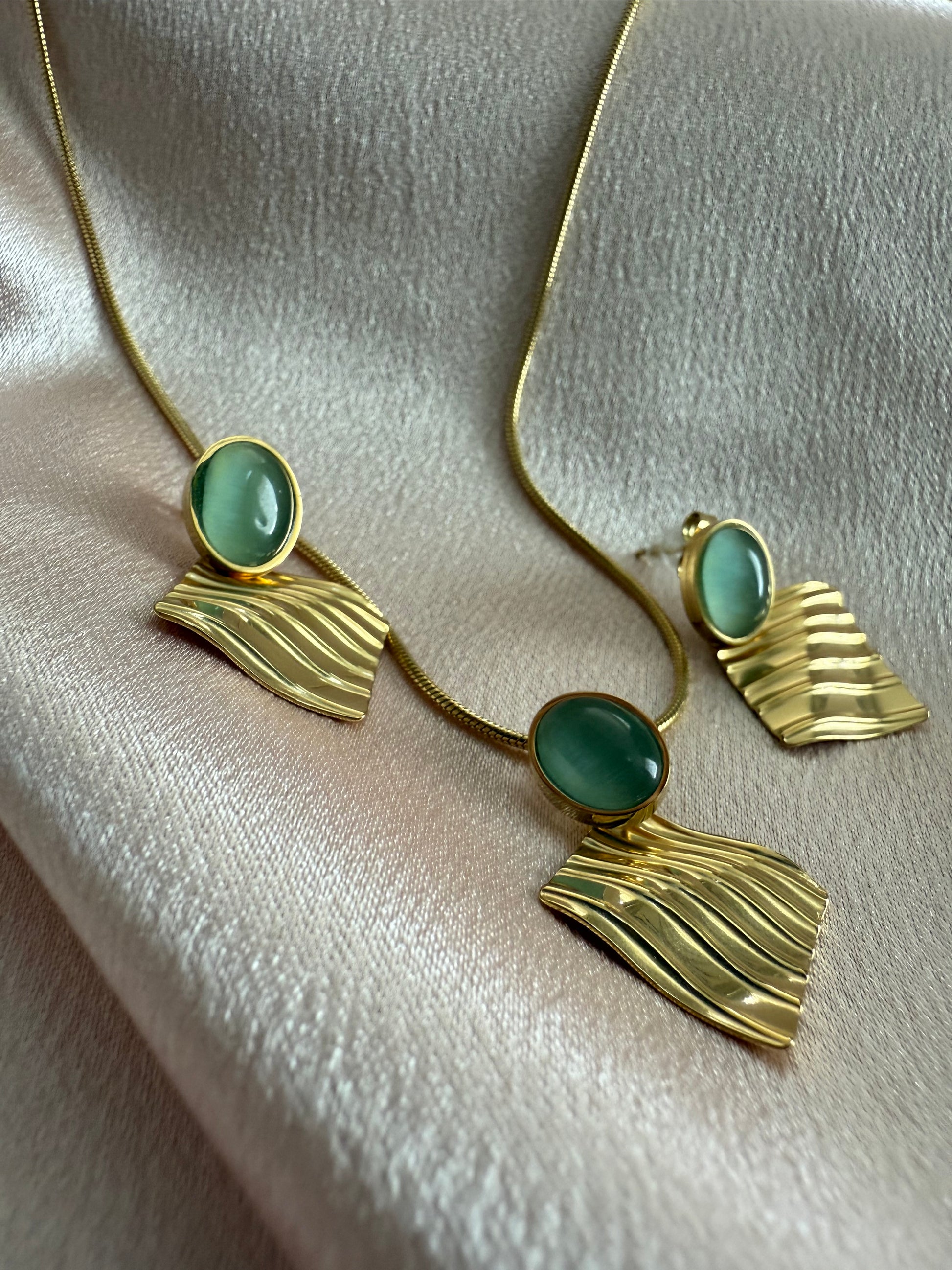 Magnifique ensemble 3 pièce couleur doré / vert émeraude en acier inoxydable.